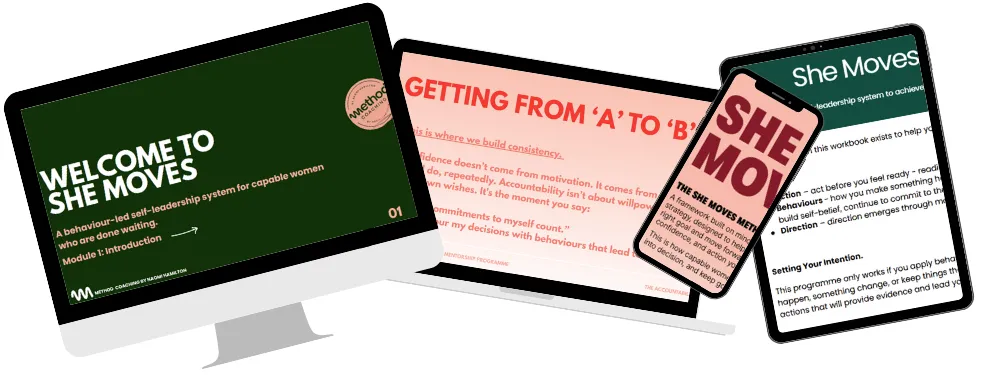 In this module, I introduce She Moves, a behaviour-led self-leadership system designed for capable women who are ready to take action and stop waiting...